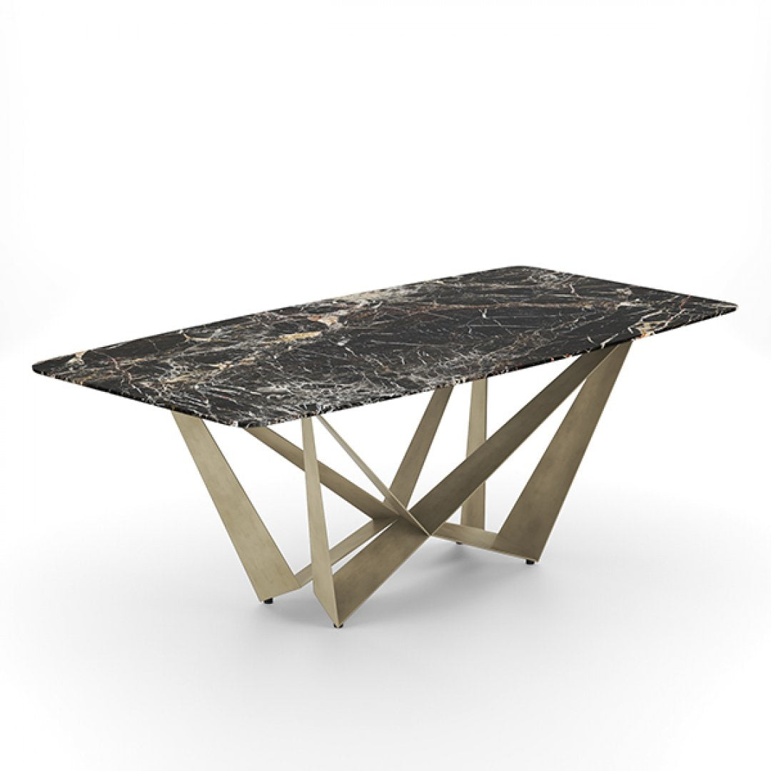 Exclusieve Eettafel met Elegant Black Spider Marmer en Goudkleurig Geometrisch Onderstel