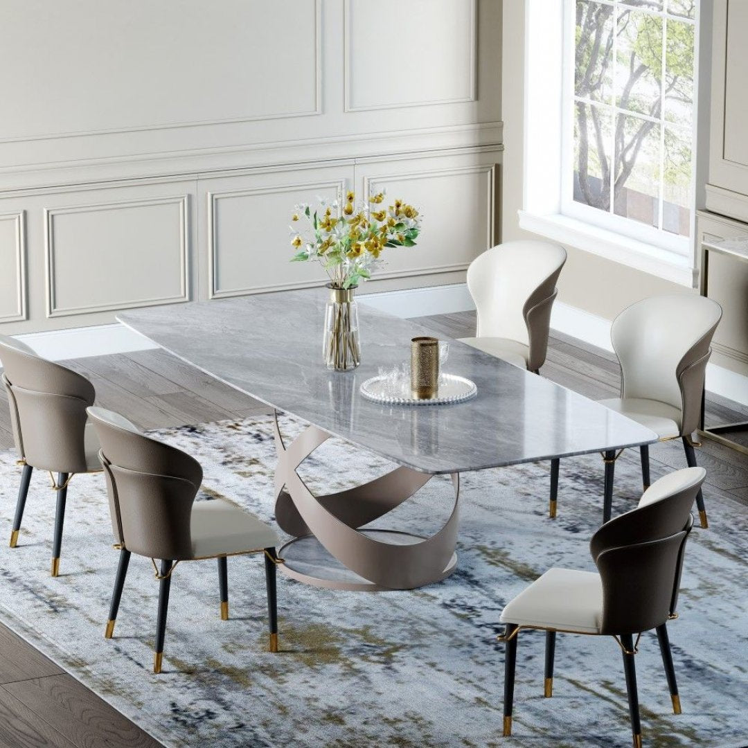 Luxe Marmeren Design Eettafel met Artistiek Metalen Onderstel