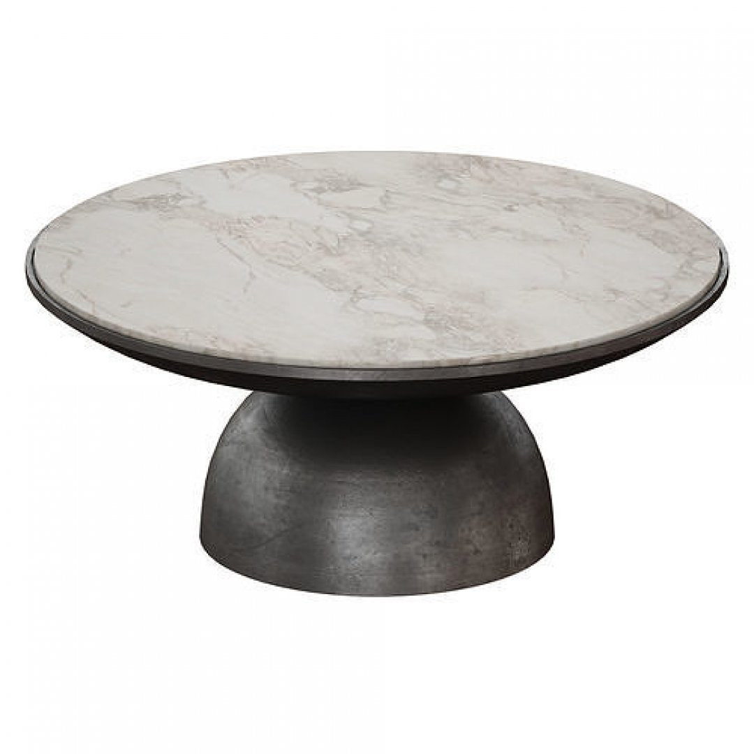 Breng tijdloze elegantie in je interieur met deze luxe marmeren salontafel. Het prachtige ronde marmeren blad in combinatie met de robuuste, industriële voet maakt deze tafel een echte blikvanger.