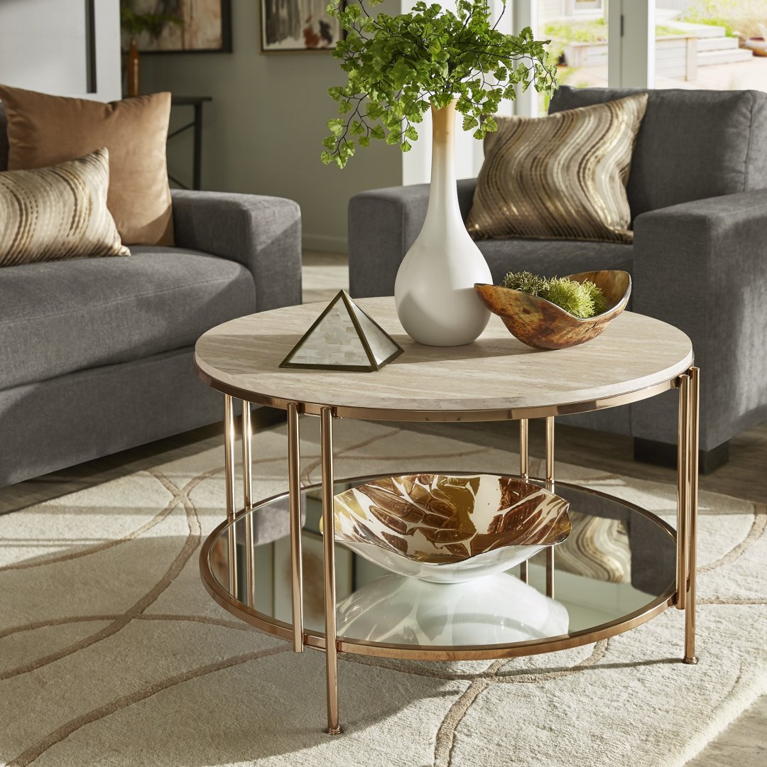 Luxe Ronde Marmeren Salontafel met Spiegelplank & Gouden Accenten ✨