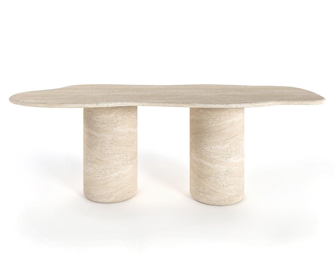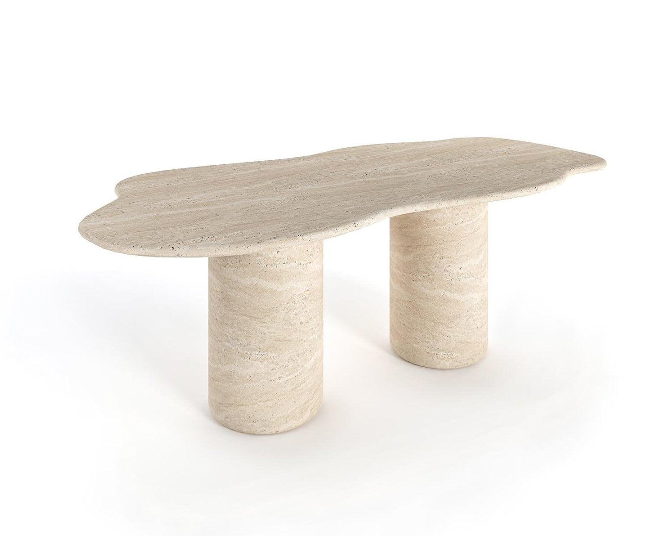 Organische Travertijn Eettafel met Sculpturaal Blad