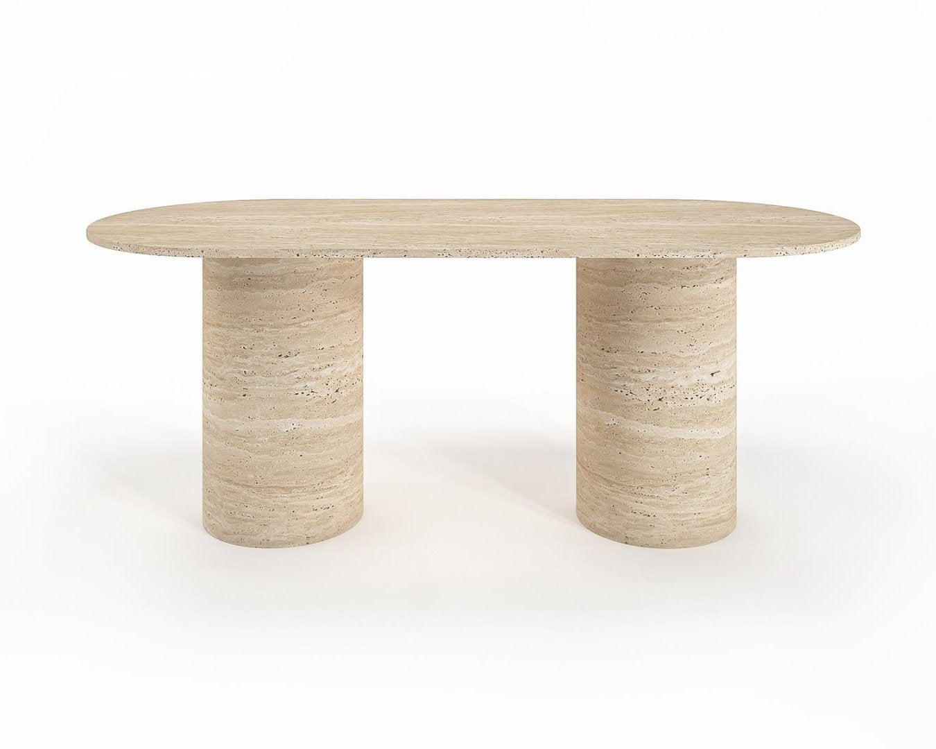 Luxe Ovale Travertijn Eettafel met Cilindrische Poten