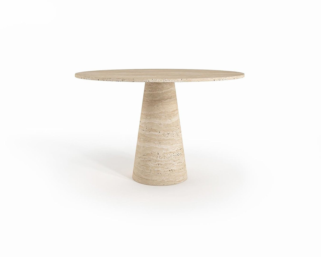 Luxe Ronde Travertijn Eettafel met Conische Poot