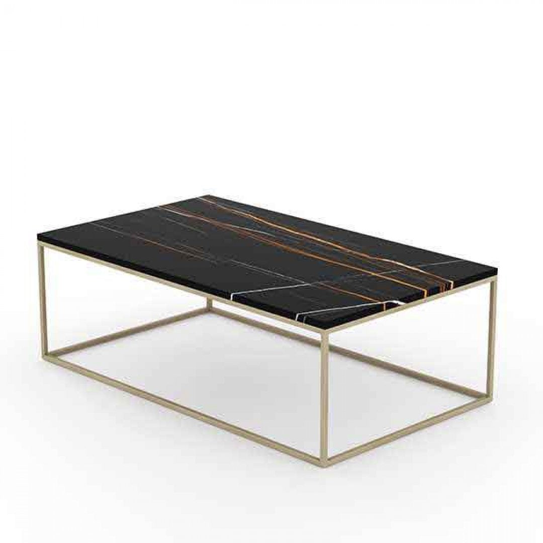 Moderne Rechthoekige Marmeren Salontafel met Elegant Gouden Frame