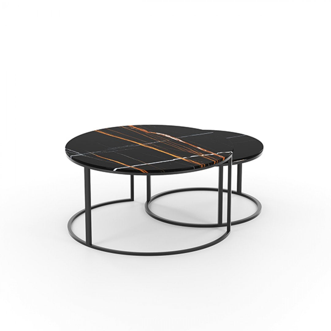 Set van 2 Elegante Ronde Salontafels met Zwart Marmer en Rond Metalen Frame