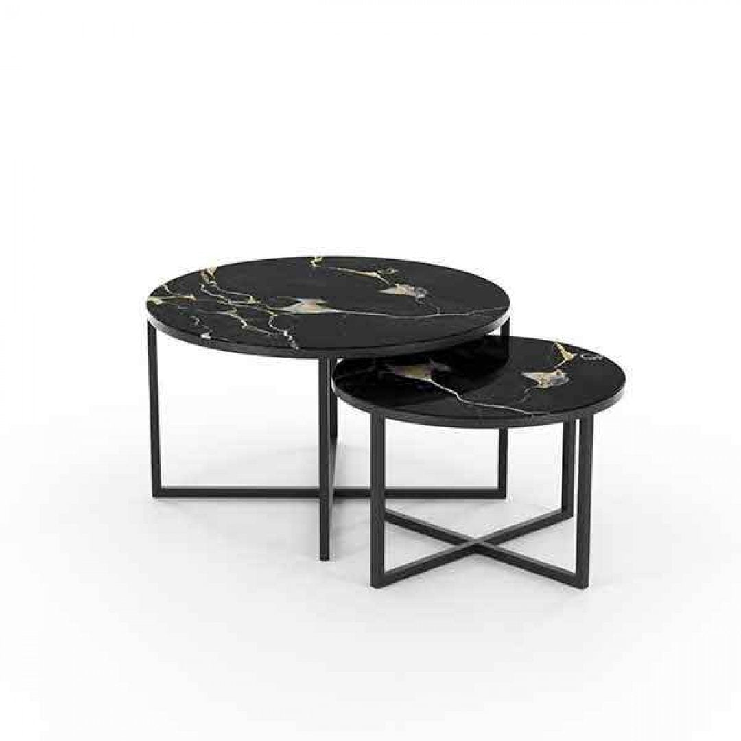 Set van 2 Luxe Ronde Salontafels met Zwart Marmer en Zwart Metalen Onderstel